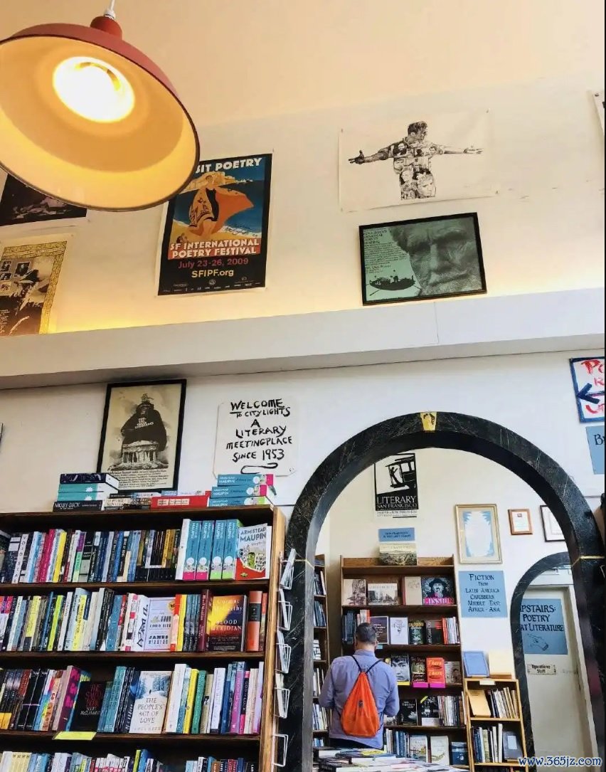 旧金山北海滩的哥伦布大街,是这群叛逆者的精神家园,城市之光书店与维苏威咖啡屋便是核心地标。1953年,费林盖蒂创立的城市之光,是美国首家专营平装书的独立书店,取名自卓别林电影,专为小众先锋文学驻足。金斯堡、盖如阿克们每日在此聚集,朗读新作,进行思想交锋,金斯堡更在留言簿写下“这里是诗歌的避难所”。当年书店还藏着一个秘密角落,专门存放文人们的手稿,费林盖蒂每日偷偷整理,生怕被当局查抄,如今这里的手稿已成珍贵史料。盖如阿克也曾在书店“偷藏”威士忌,读累了便小酌一口,被费林盖蒂发现后两人反而共享,这个角落后来也成了游客打卡的亮点。