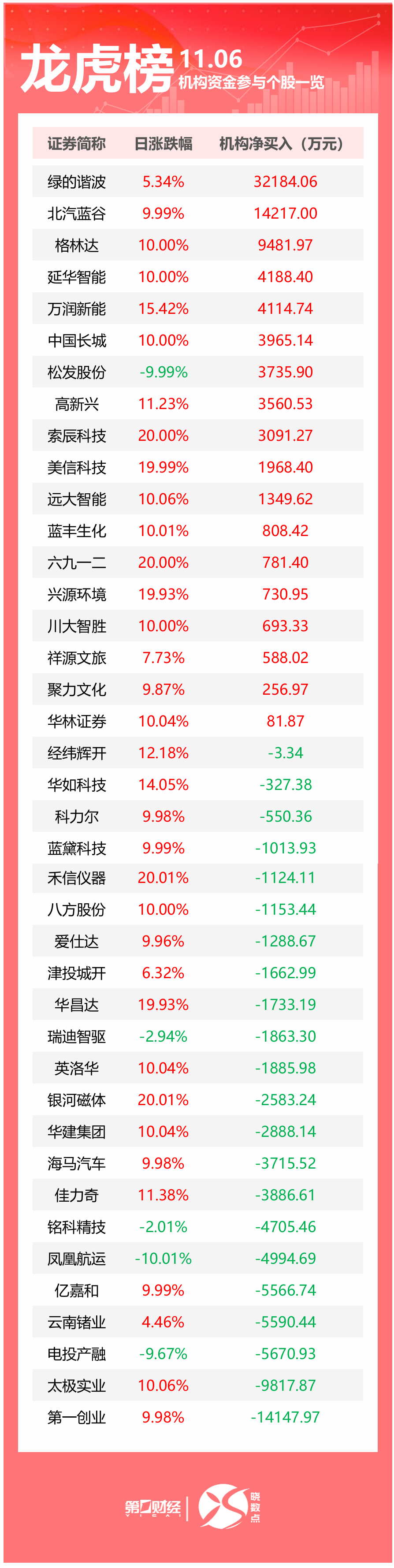 龙虎榜丨机构今日抛售这22股永旺配资端,买入绿的谐波3.22亿元龙虎榜丨机构今日抛售这22股,买入绿的谐波3.22亿元