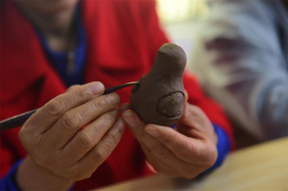 居民指尖变动,一件泥塑作品雏形显现。傅新春摄