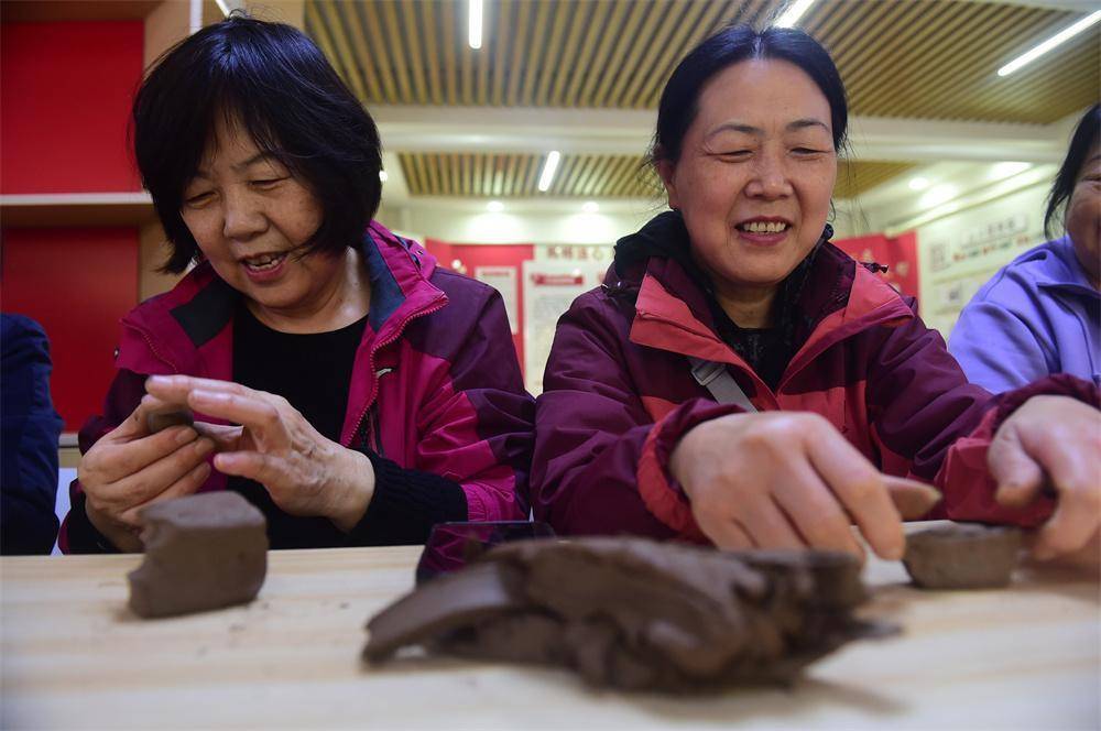 10月16日,沧州市新华区新时代文明实践中心在熙园社区开展“泥塑传非遗 邻里话文明”主题活动。傅新春摄10月16日,河北沧州市新华区新时代文明实践中心在熙园社区开展“泥塑传非遗 邻里话文明”主题活动,让非遗文化浸润生活,让邻里情谊悄然升温。活动现场,河北省级非物质文化遗产项目“三痴斋”泥塑代表性传承人宋长峰从泥塑艺术的历史脉络入手,讲解了泥塑文化的发展历程,演示了揉泥、塑型等制作技巧。社区居民们热情高涨,有的专注地捏着手中的作品,有的则和邻里交流着创作思路,每一件作品都蕴含着居民对传统文化的理解与表达。