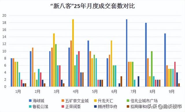 河西南“新八客”一直是区域成交主力永华配资,那这几个小区今年共及成交情况,和月度对比情况怎样,据不完全统计,8各项目1-9月成交情况如下,海峡城、五矿崇文金城、升龙天汇三个小区分别以112、83、81套的成交量,占据河西南前三名(同时也是整个河西前三名),海峡城在三季度成交非常迅猛,升龙天汇三季度表现一般,城市广场价格下降以后,成交了逐渐开始追赶。其他小区中永华配资,正荣润峯出现2个月0成交,招商雍和府7月没有成交。朗诗熙华府和招商雍和府在“新八客”中属于低活跃度小区。